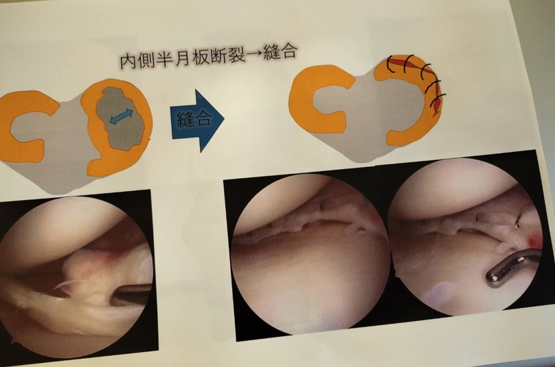 その時は、①前十字靭帯断裂⇒再建手術、②半月板の損傷⇒縫合手術
