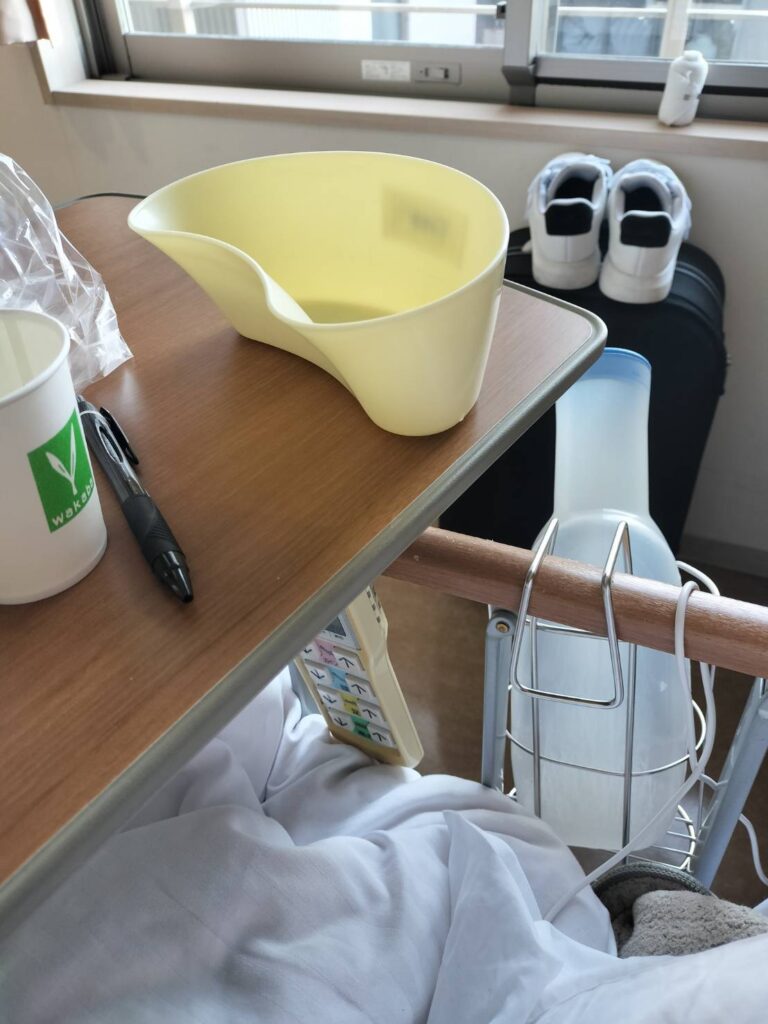 基本的には部屋の中で容器を使って行い、ナースに助けてもらいます⇩